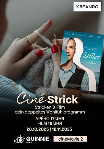 Wir haben eine neue Rubrik: cinéStrick! Im cineMovie2 am 28. Oktober 2025 um 18:00 Uhr. Vorab offerieren wir zusammen mit KREANDO AG ein Apéro ab 17:00 Uhr. Bring deine Strick-Utensilien mit und stricke bis die Finger glühen.